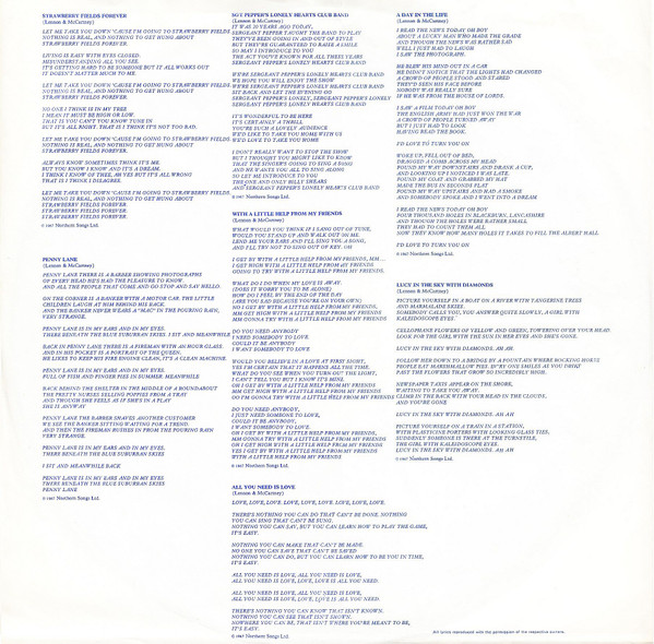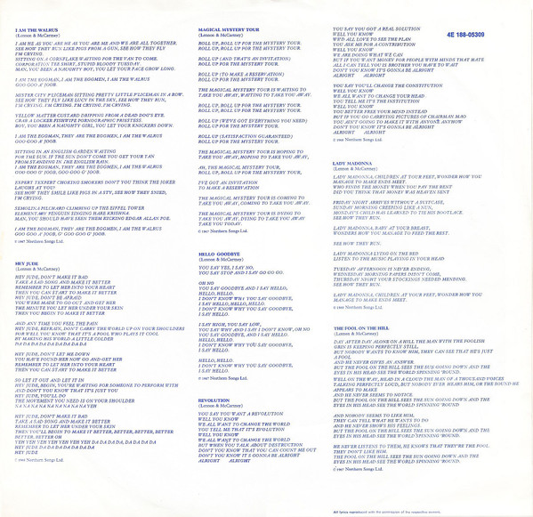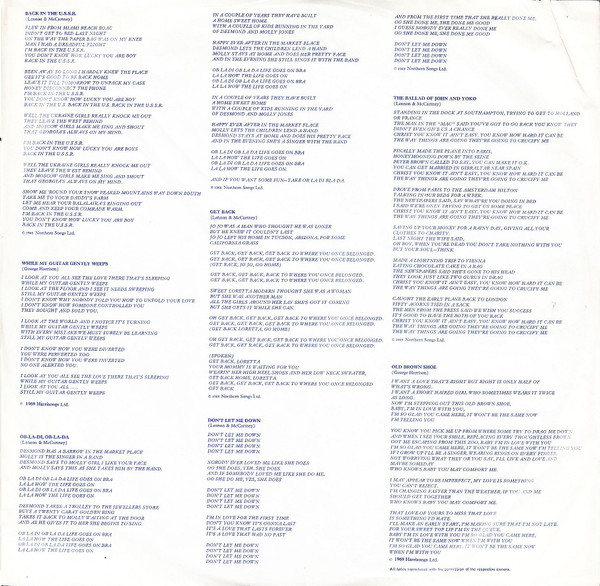 - Written-By – George Harrison (tracks: C2, C7, D1, D3), Lennon-McCartney (tracks: A1 to C1, C3 to C6, D2, D5 to D7)