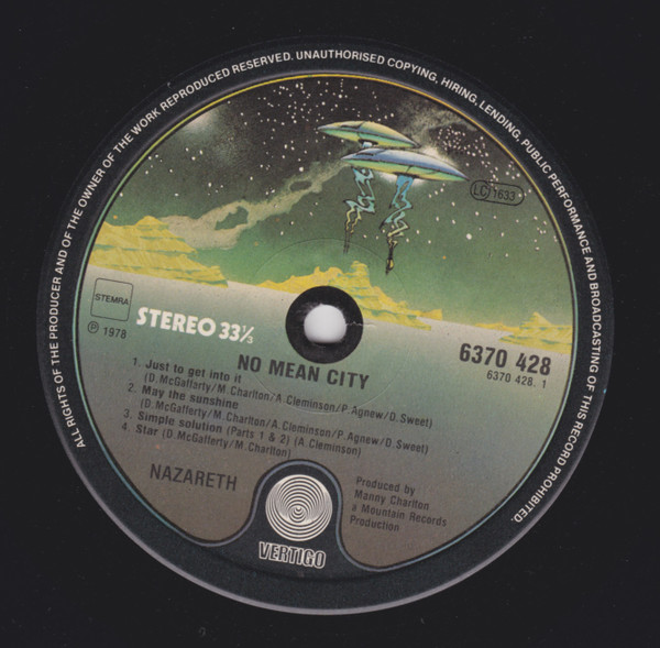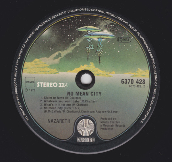 Labels similar except outer writings longer as: Nazareth (2) - No Mean City