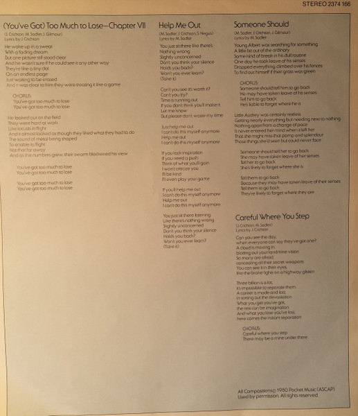 - Lead Vocals, Keyboards, Bass – Michael Sadler