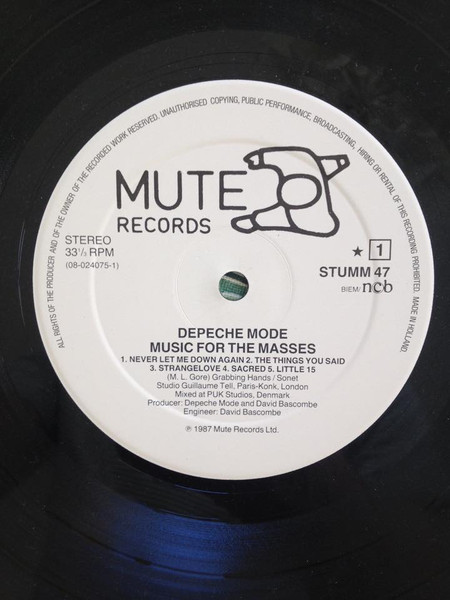 Spine: ℗ + © 1987 Mute Records Ltd.