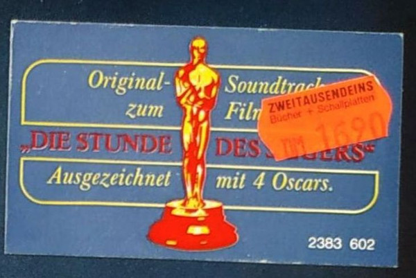 There are versions where the front cover has a sticker: "Original Soundtrack zum Film "Die Stunde des Siegers" Ausgezeichnet mit 4 Oscars. 2383 602"