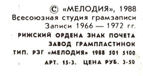 Всесоюзная студия грамзаписи. Запись 1966-1972 гг.
