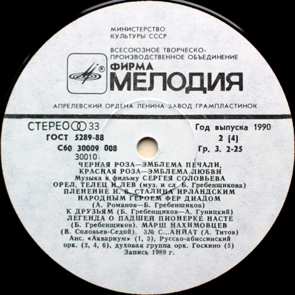 - Record Company – Всесоюзная Студия Грамзаписи