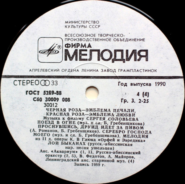 Arranged By – Б. Гребенщиков*