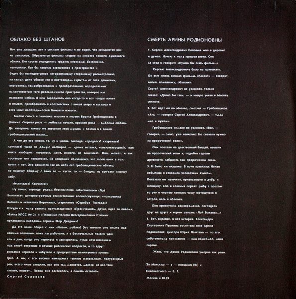- Liner Notes – Б. Г.*, Сергей Соловьев