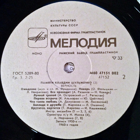- Orchestra – Оркестр п/у А. Норченко* (tracks: B7, B8)
