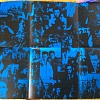 The poster (01-468946-20) contains the lyrics of each song on one side (white text on a black background) and a photo-montage of the band on the other. Similar to the blue and black montage on the front sleeve.
