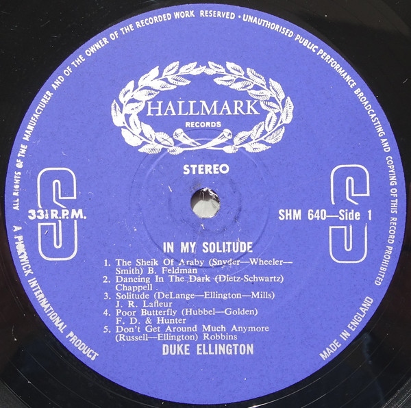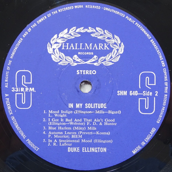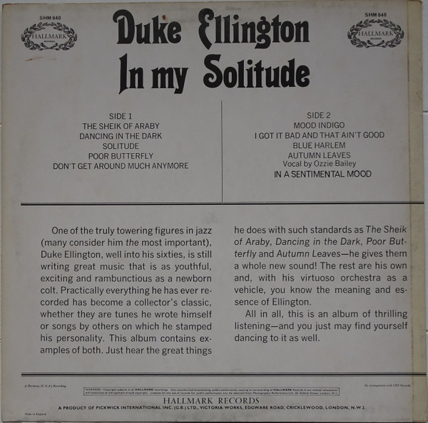 Contains several popular standards, including Ellington and Irving Mills' "(In My) Solitude," which has been titled here as "Solitude."