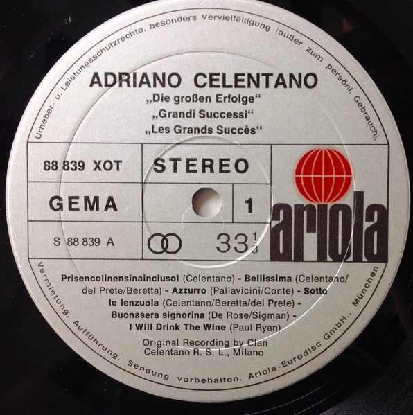 Original Recording by CBS Sugar S.p.A., Milano, on Clan Label