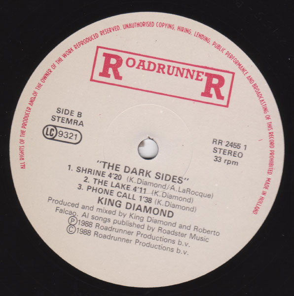 - Written-By – A. LaRocque* (tracks: A2, B1), King Diamond (2), M. Denner* (tracks: A1, A3)