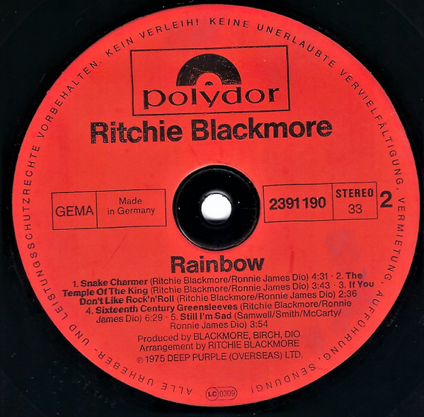 - Songwriter – Ritchie Blackmore (tracks: A1, A2, A4 to B4), Ronnie James Dio (tracks: A1, A2, A4 to B4)