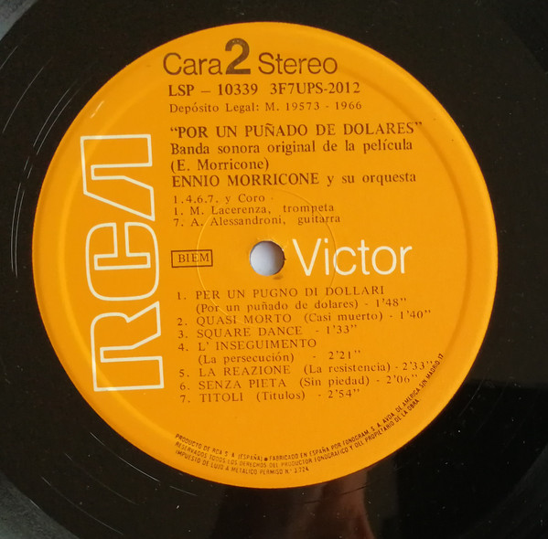 Similar to La Muerte Tenia Un Precio / Por Un Puñado De Dolares (Banda Sonora Original De La Película) but with a different text for printing company on rear cover, bottom right.