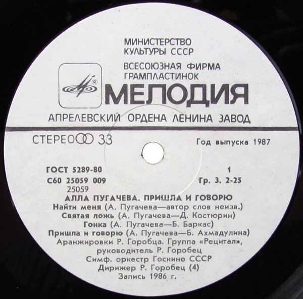 Записи киностудии «Мосфильм» 1984, 1986 гг.