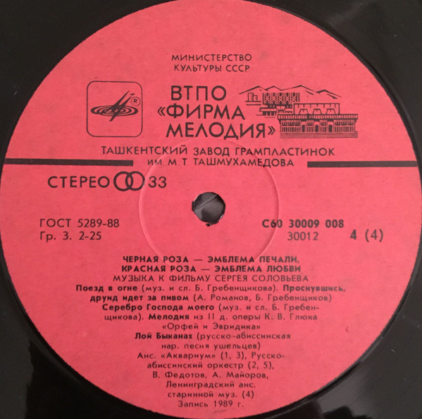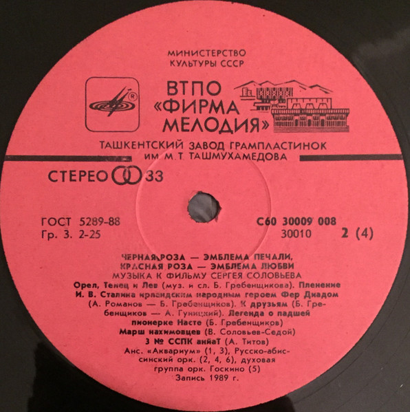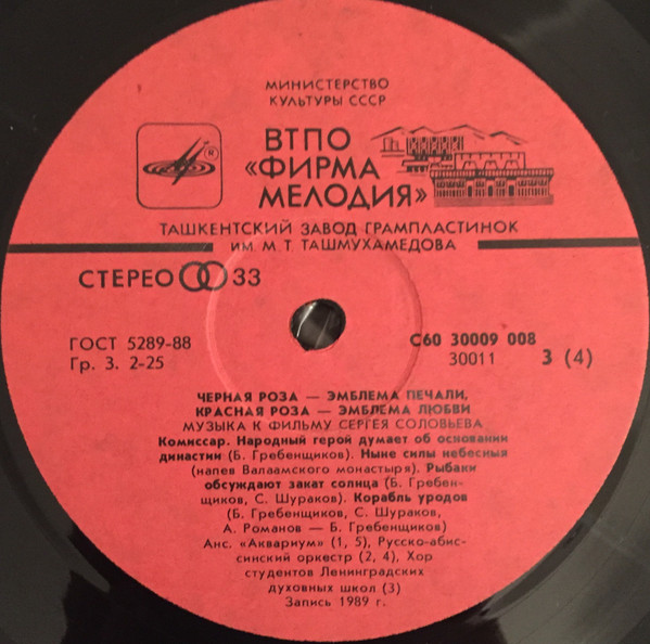 Various - Черная Роза — Эмблема Печали, Красная Роза — Эмблема Любви (Музыка К Фильму Сергея Соловьева)