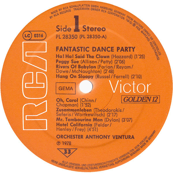 Made By RCA Schallplatten GmbH, Hamburg, Germany, From Masters Owned Or Controlled By RCA Records