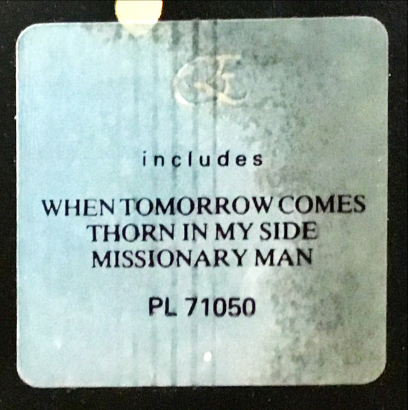 EURYTHMICS on cover front is in embossed printing.