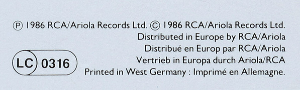 ℗ 1986 RCA/Ariola Records Ltd. © 1986 RCA/Ariola Records Ltd.