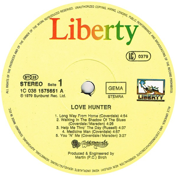 - Written-By – Marsden* (tracks: A1, A5, B2, B3), Coverdale* (tracks: A1, A2, A4 to B5), Lord* (tracks: B3), Russell* (tracks: A3), Moody* (tracks: B2, B4)