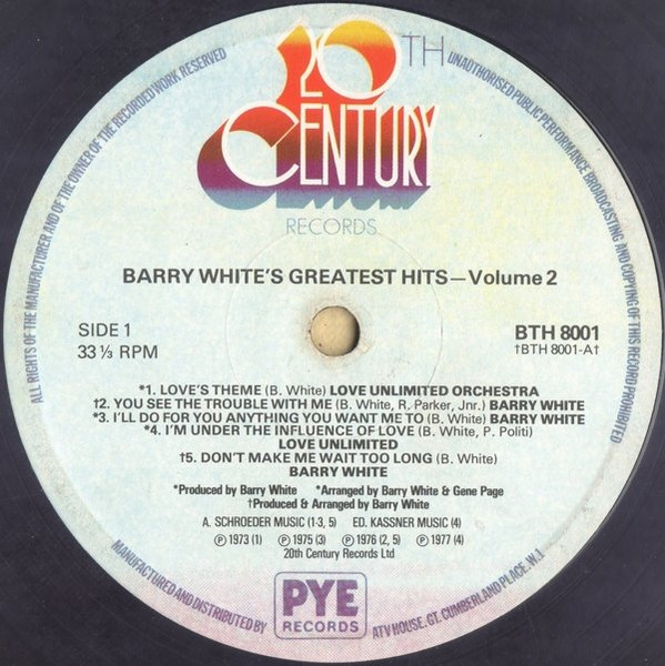 | A1 | Love Unlimited Orchestra– | Love's Theme |