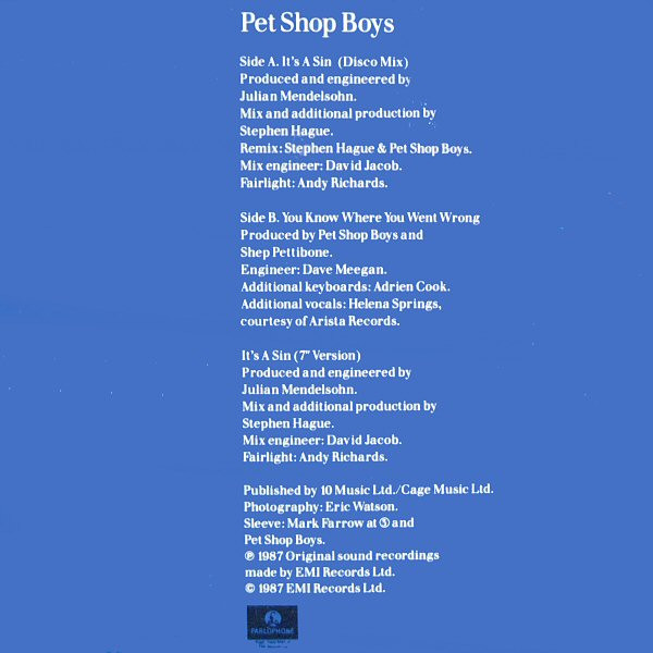Sleeve: Mark Farrow at ③ and Pet Shop Boys