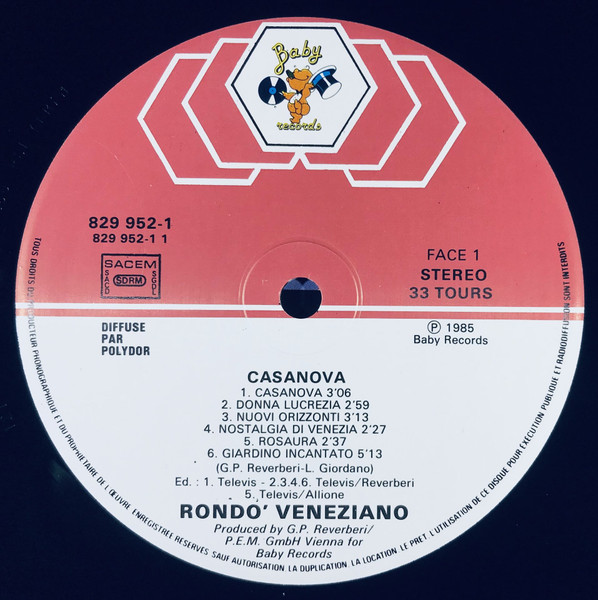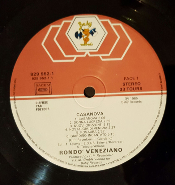 Different of Rondò Veneziano - Casanova (Baby Record logo on front Sleeve and Baby Record Label)