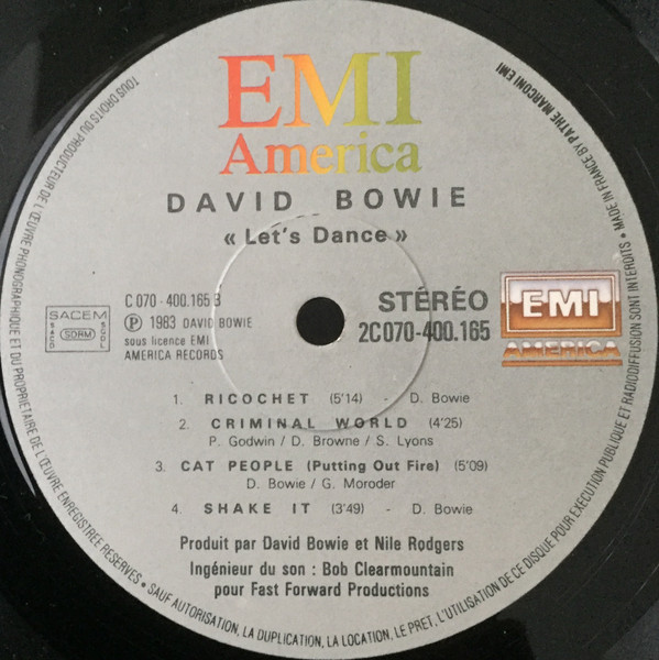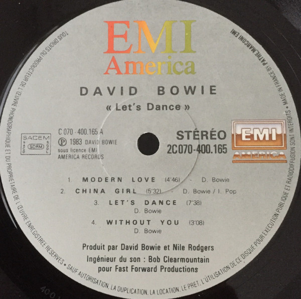 © 1983 David Bowie, ℗ 1983 David Bowie under license to Emi America Records. A Division of Capitol Records Inc.
