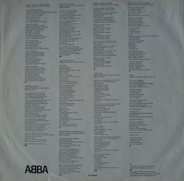 ● ● (Tracks A2, A3, A5, B2) Copyright © 1976 for the world by POLAR MUSIC AB, Stockholm Sweden.
