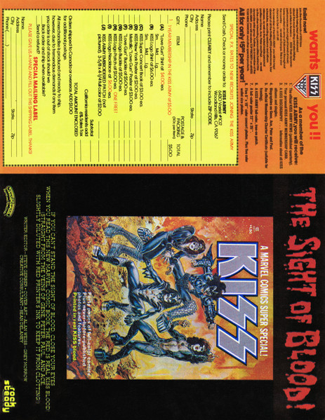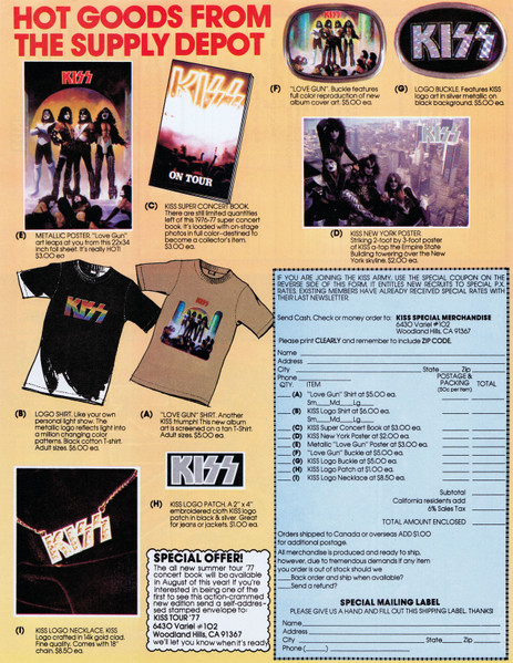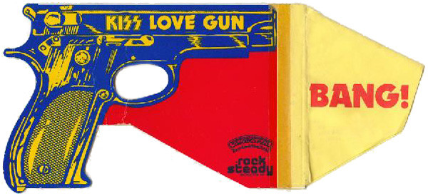 First pressing issued with a die-cut Love Gun "pop gun" insert and a double-sided merchandise order form.
