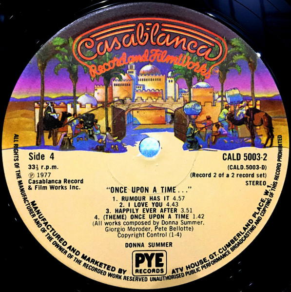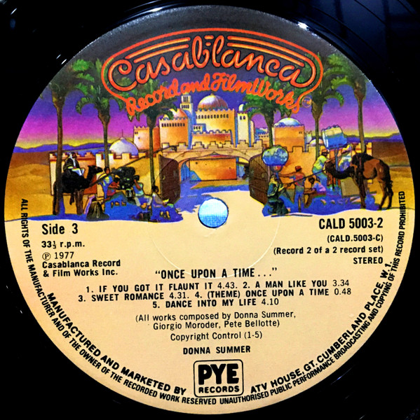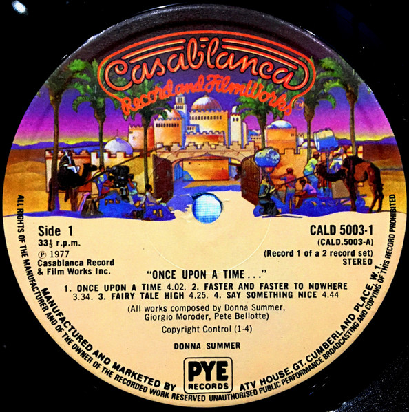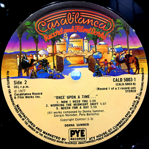 Composer credits on record labels – Donna Summer, Giorgio Moroder and Pete Bellotte.