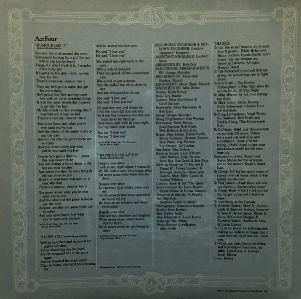 Composer credits on sleeve inserts – Summer/Moroder/Bellotte.