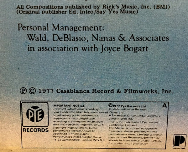 - Phonographic Copyright ℗ – Casablanca Record And Filmworks, Inc.