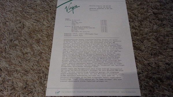 ℗ & © 1985 Virgin Records Ltd.