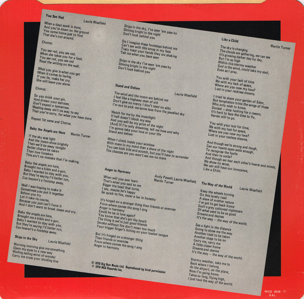 - Written-By – Laurie Wisefield (tracks: A1, A3, A4, B3), Martin Turner (2) (tracks: A2, B2)