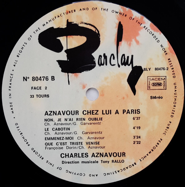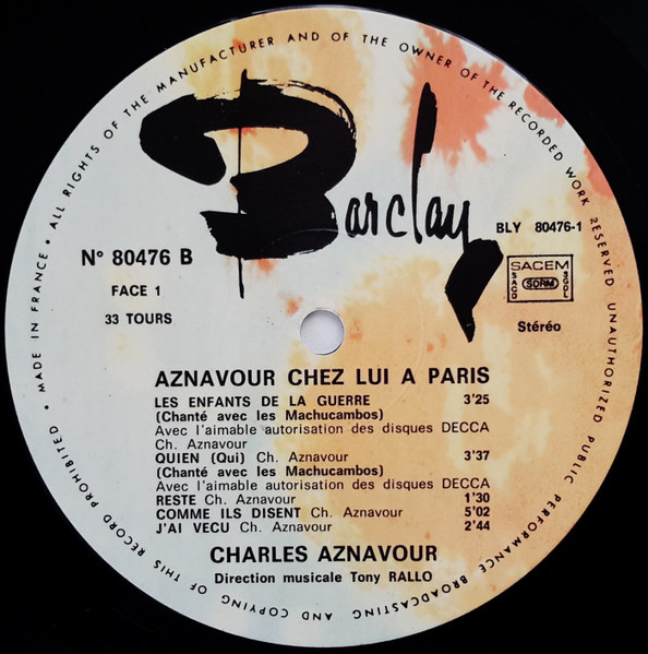 C1, C2 ces deux titres sont chantés par Charles Aznavour et Los Machucambos avec l'aimable autorisation des Disques DECCA.
