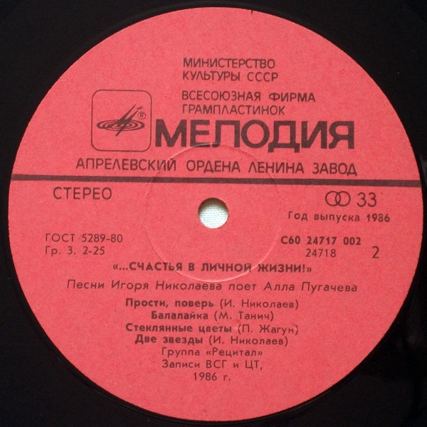 - Vocals – Алла Пугачева