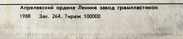 - Pressed By – Апрелевский Завод Грампластинок