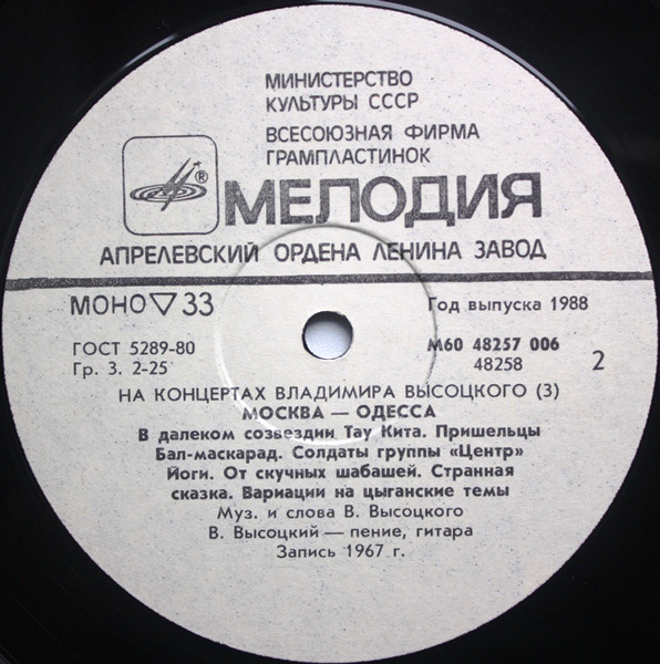 - Recorded By – Всесоюзная Студия Грамзаписи