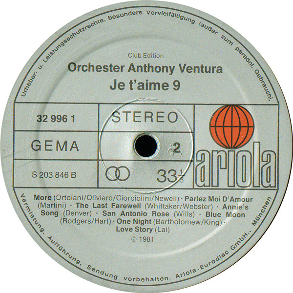 Orchester Anthony Ventura - Je T'aime 9