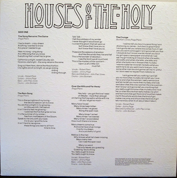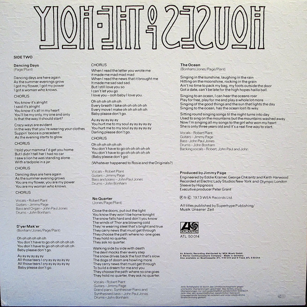 - Bass, Mellotron, Synthesizer, Organ, Piano, Bass [Synthesised Bass] – John Paul Jones