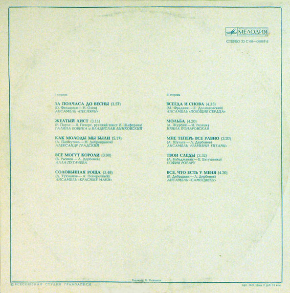 - Pressed By – Всесоюзная Студия Грамзаписи