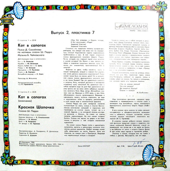 - Voice Actor [Кот] – Н. Литвинов* (tracks: A, B1)