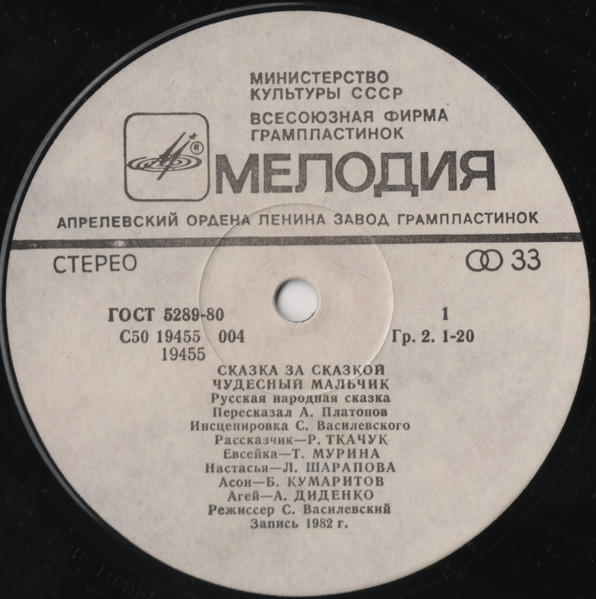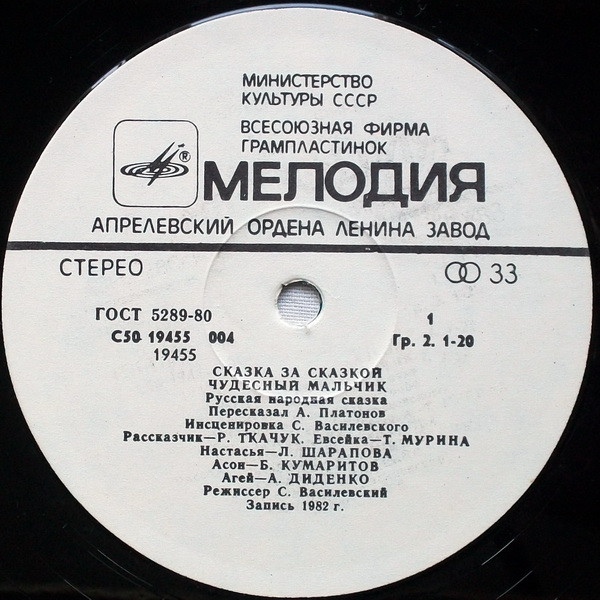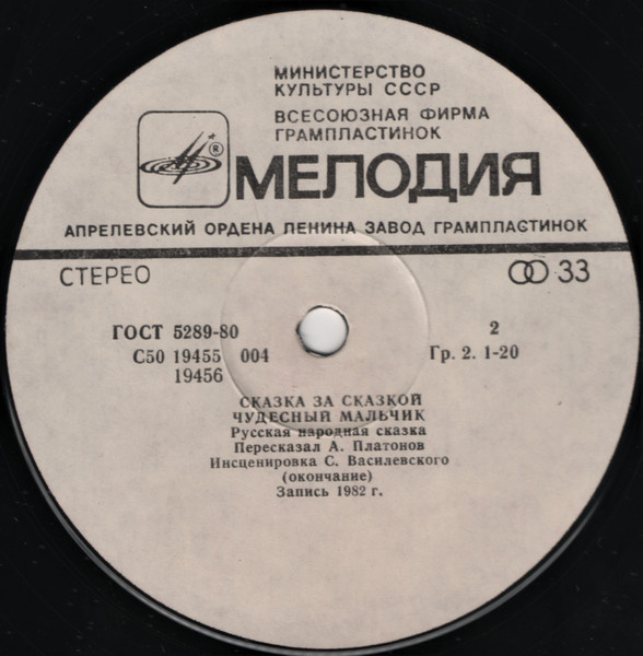 Всесоюзная студия грамзаписи. Запись 1982 г.