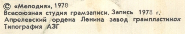 Всесоюзная студия грамзаписи. Запись 1978 г.
