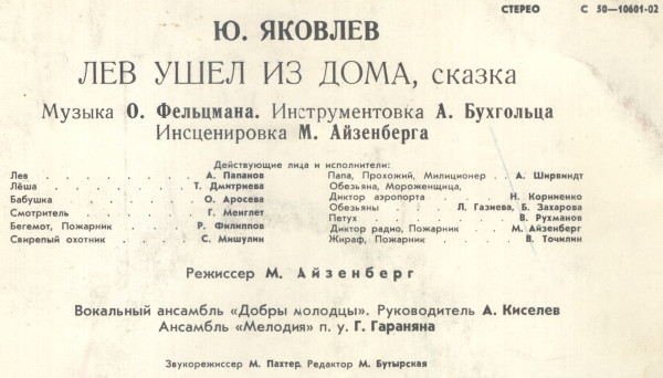 - Directed By, Written-By [Scenario] – М. Айзенберг*