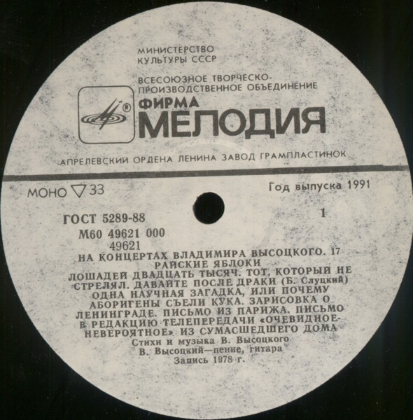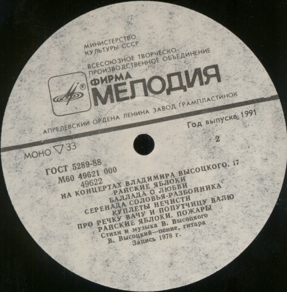 - Record Company – Всесоюзная Студия Грамзаписи
