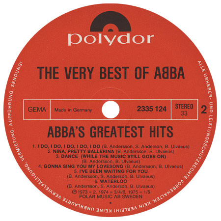 - The Very Best Of ABBA (ABBA's Greatest Hits) rim text on label starts with "Urheber- ..."