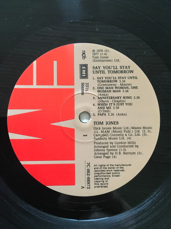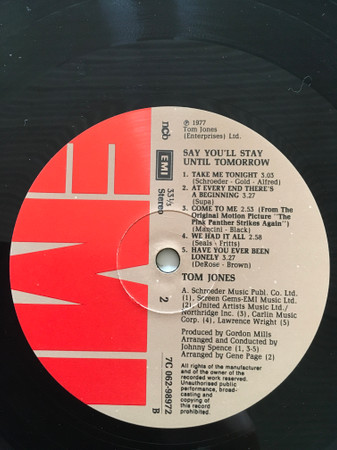 - Arranged By – Gene Page (tracks: A4, B2), H.B. Barnum (tracks: A5, B5), Johnnie Spence (tracks: A1, A2, A3, B1, B3, B4)