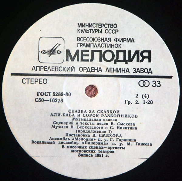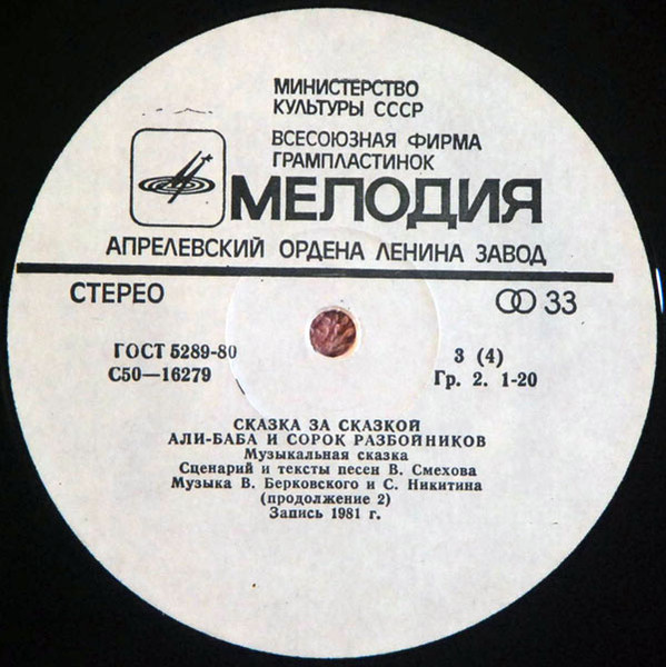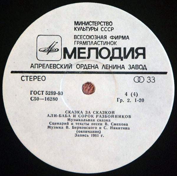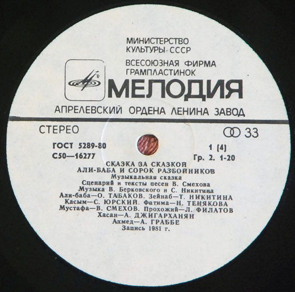 Variant 1: 1981 Зак. 261. Тираж 4655 (White labels): Various - Али-Баба И Сорок Разбойников (This Release)