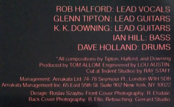 - Lead Guitar – Glenn Tipton, K. K. Downing