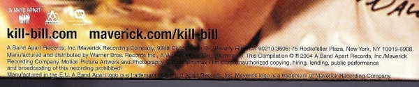 Manufactured and distributed by Warner Bros. Records Inc. A Warner Music Group Company This compilation ℗ © 2004 A Band Apart Records, Inc. / Maverick Recording Company. Motion Picture Artwork and Photography © Miramax Film Corp.
